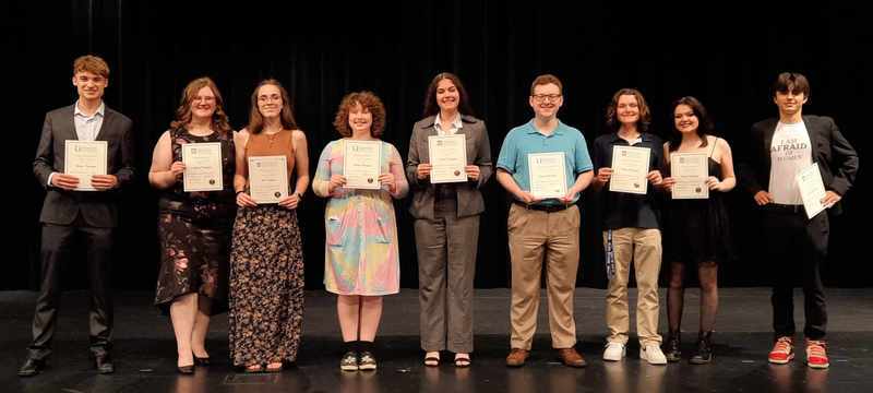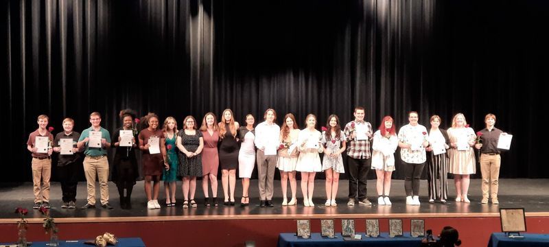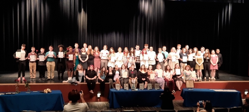 The next level is "Honor Thespians," which is still prestigious and requires 50 "points." The award winners for this were: Victoria Bocock, Reagan Bullard, Savana Collins, Katie Craddock, Carter Hertenstein, Ryan Maines, Aaron McKinnies, Cadence Morgan, and Ely Schernekau.